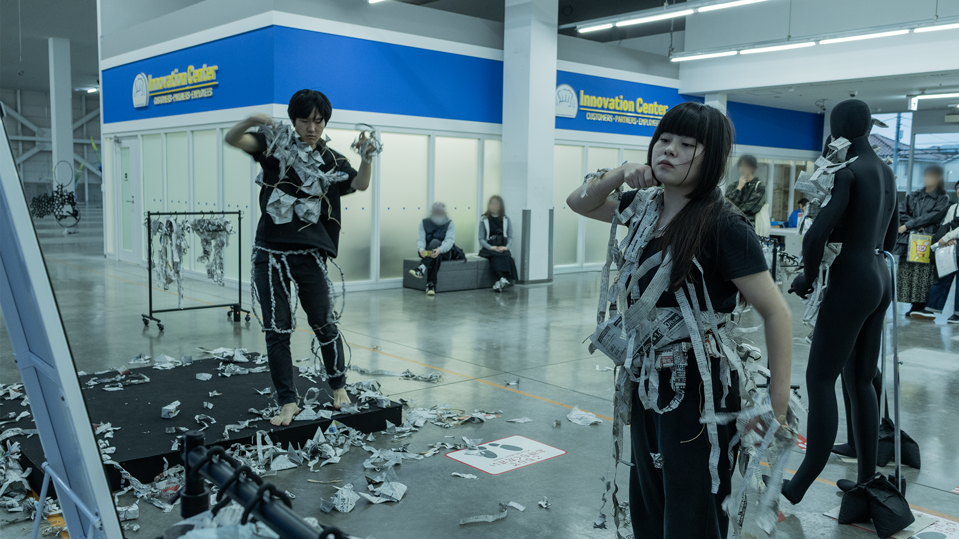 しかし、本当に問題を抱えているのは、まるで使い捨てのように消費をすることで欲求を満たしている“私たち”消費者側なのではないだろうか? 大量生産・大量廃棄を繰り返し利益を生み出すファッション業界と、流行に踊らされて大量消費をする消費者の私たちへ、「真の豊かさ」とは何か、という問いを表現したい。